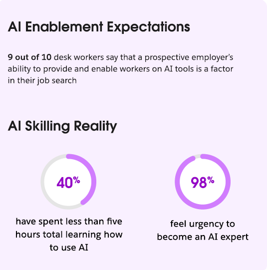 This highlights a challenge many workers face: while there’s recognition of the importance of AI, there’s often little time to dedicate to training or mastering the technology. With workloads and daily responsibilities consuming a large chunk of time, many employees struggle to invest in learning opportunities, even if they feel an urgent need to do so.